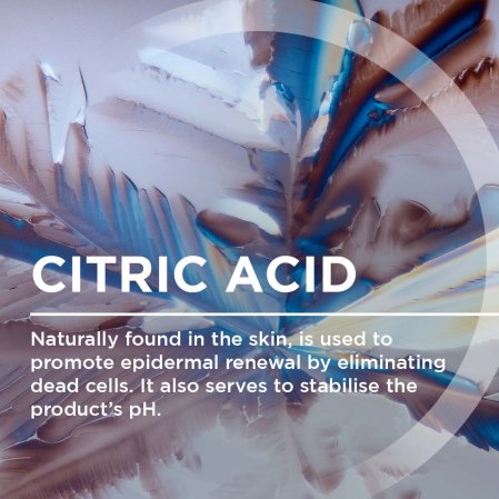 - Citric acid helps accelerate epidermal renewal and eliminate dark spots